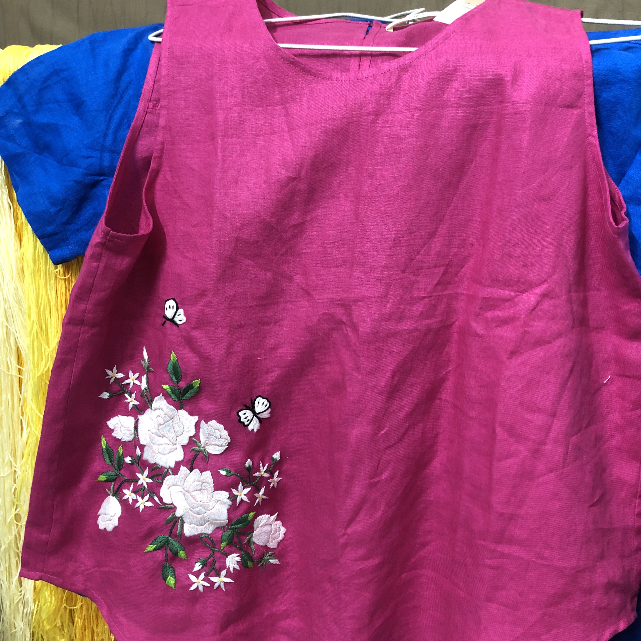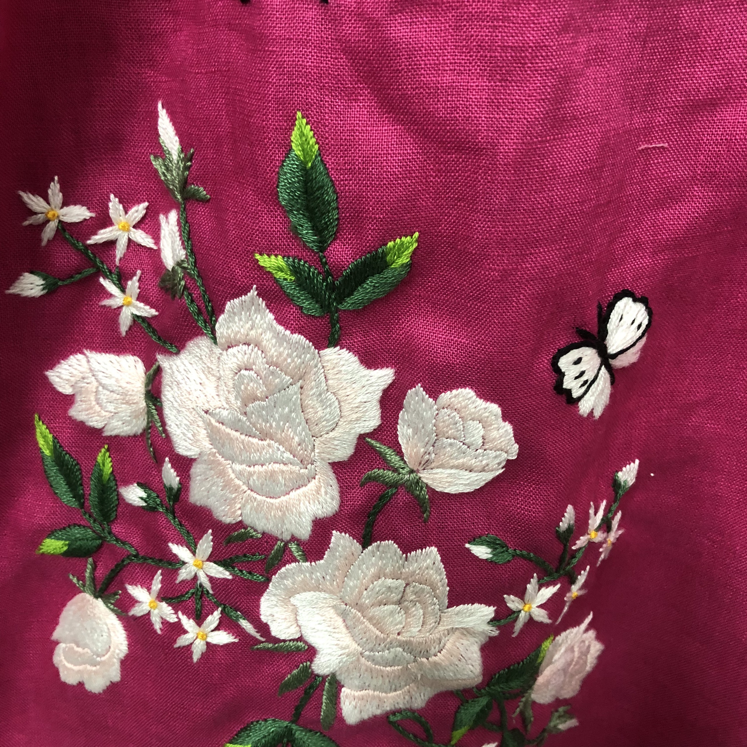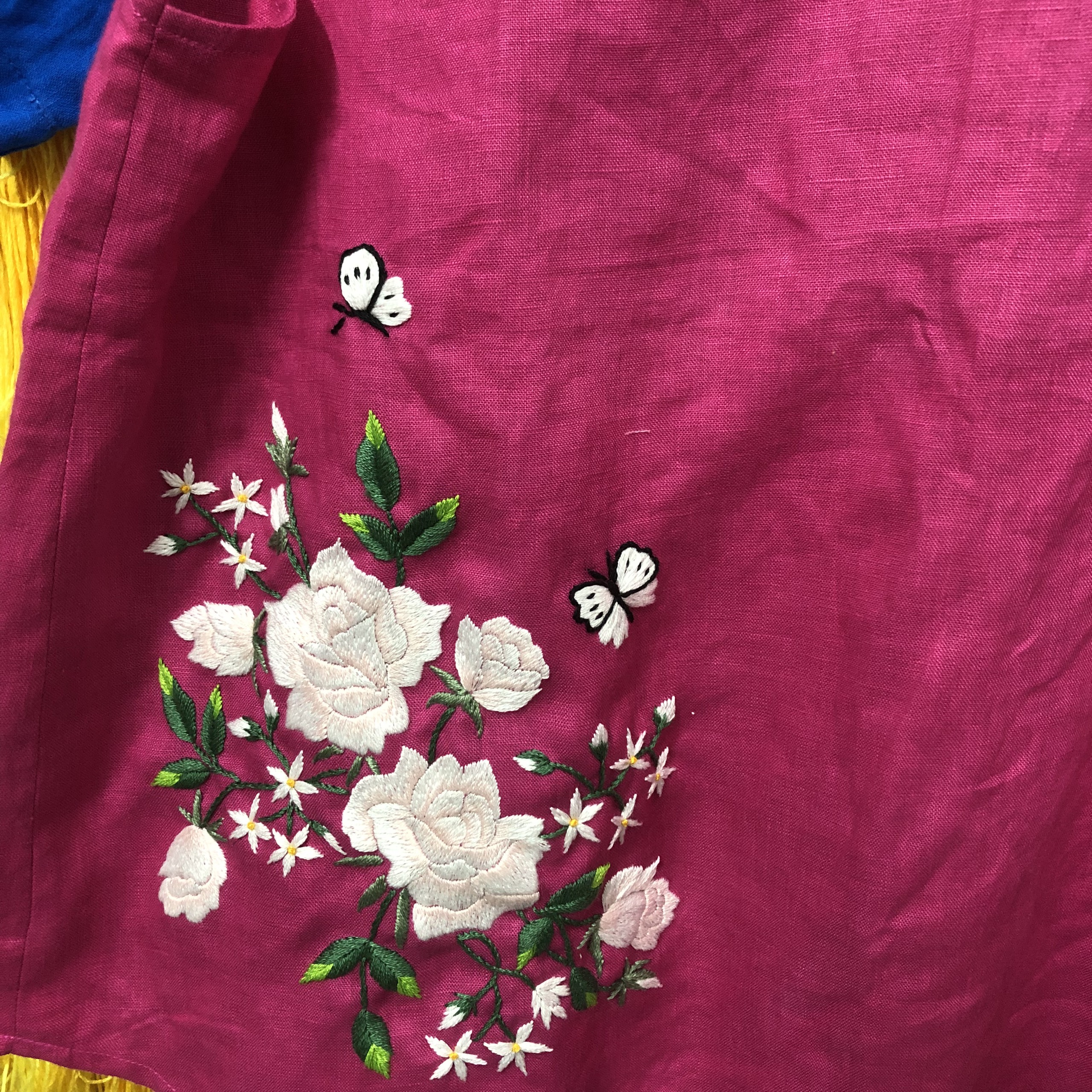 1. Áo sơ mi linen thêu tay họa tiết hoa hồng